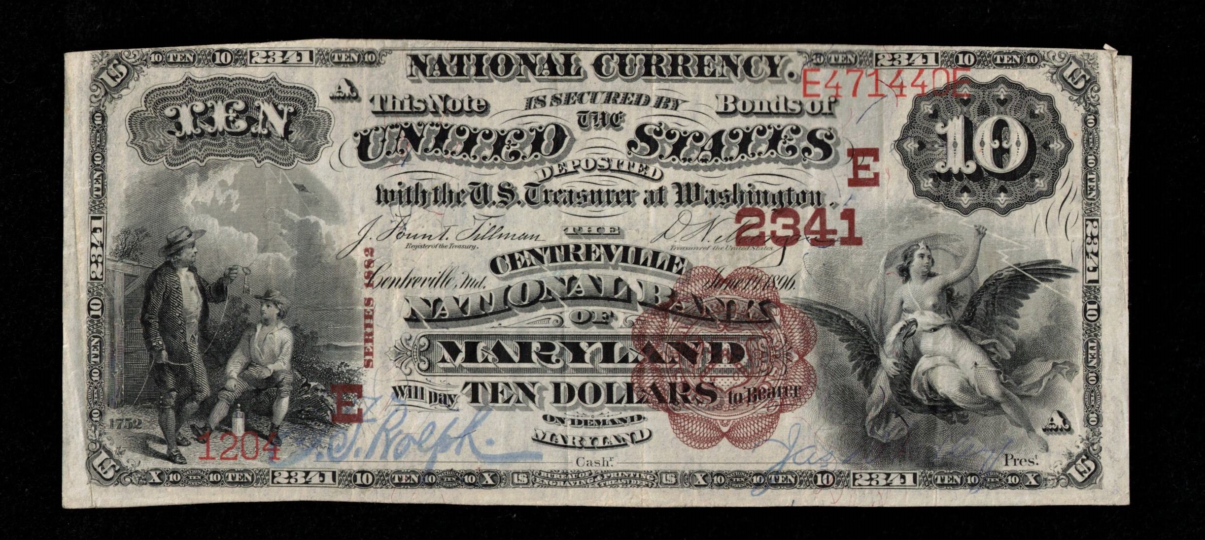 1882 Series $10 note from THE CENTERVILLE NATIONAL BANK OF MARYLAND, SERIAL 1204