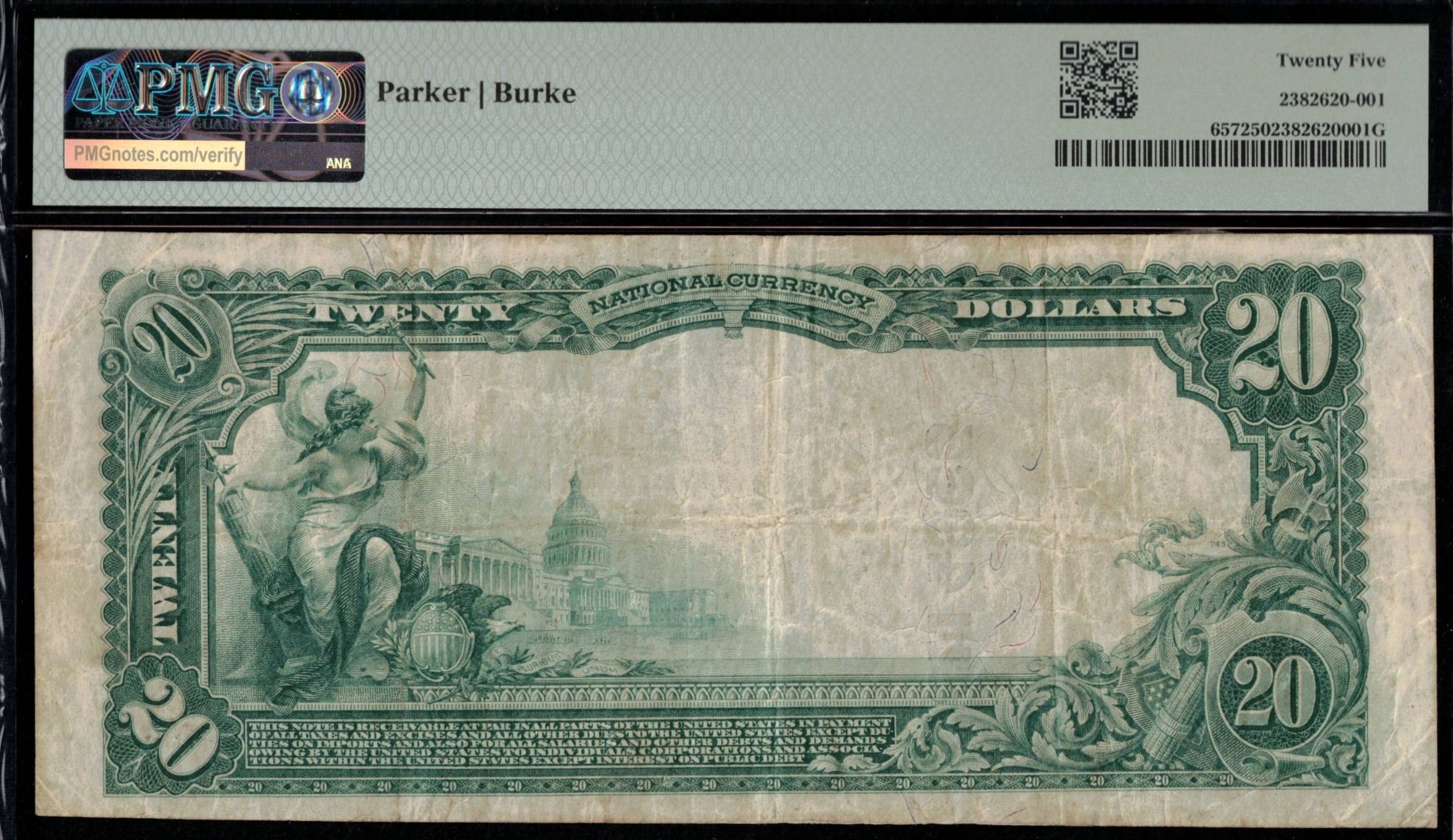 Third-party graded P.M.G #25, rated as Very Fine Plus. Excellent title on this Twenty Dollar denomination, with no remarks noted on the graded holder.