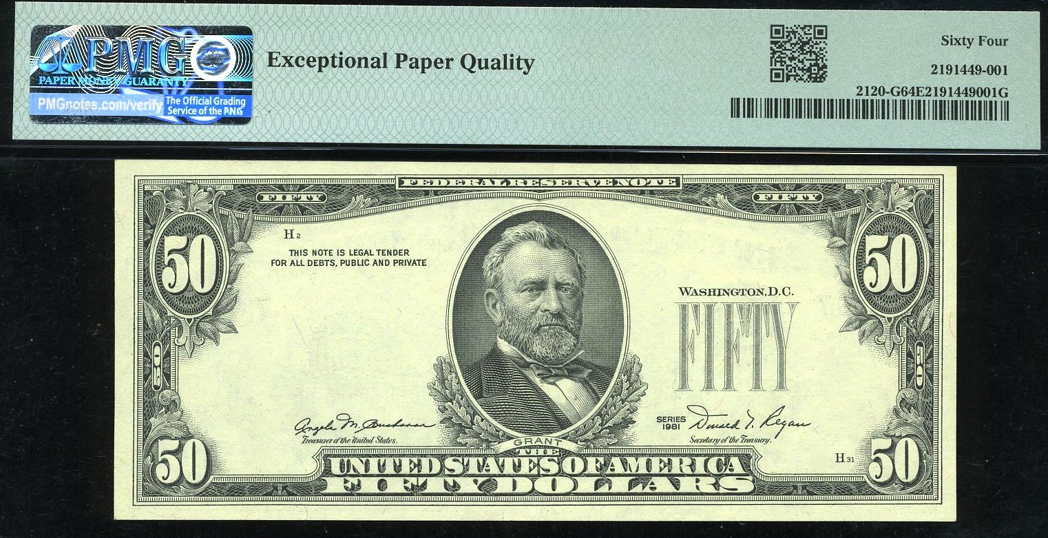 **FR‑2120‑G (1981 $50 Federal Reserve Note — Chicago)