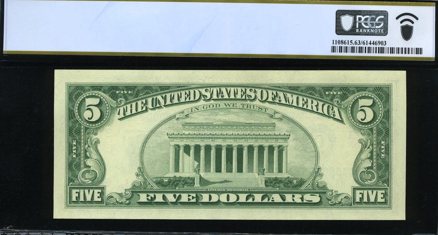 Certified PCGS 63PPQ Choice Uncirculated, this example shows premium paper quality, bold embossing, and the crisp originality expected from a note stored untouched for decades. Centering is decent, and the surfaces retain the fresh, pack‑cut look that only true early‑run notes display.
