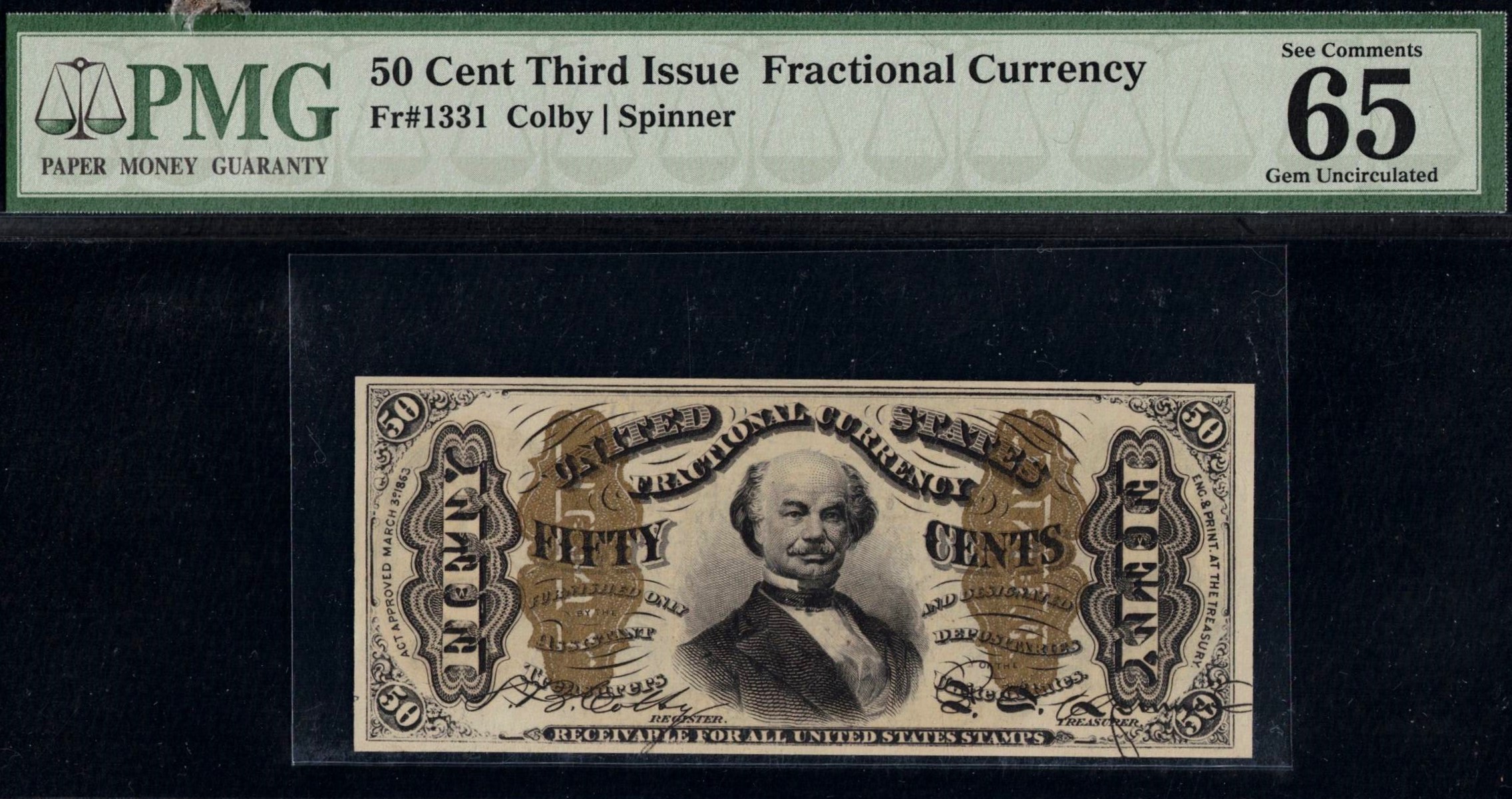 PMG #65EPQ Gem Uncirculated with exceptional paper quality. The color, centering, and eye appeal are outstanding on this piece. Signed by Colby/Spinner.