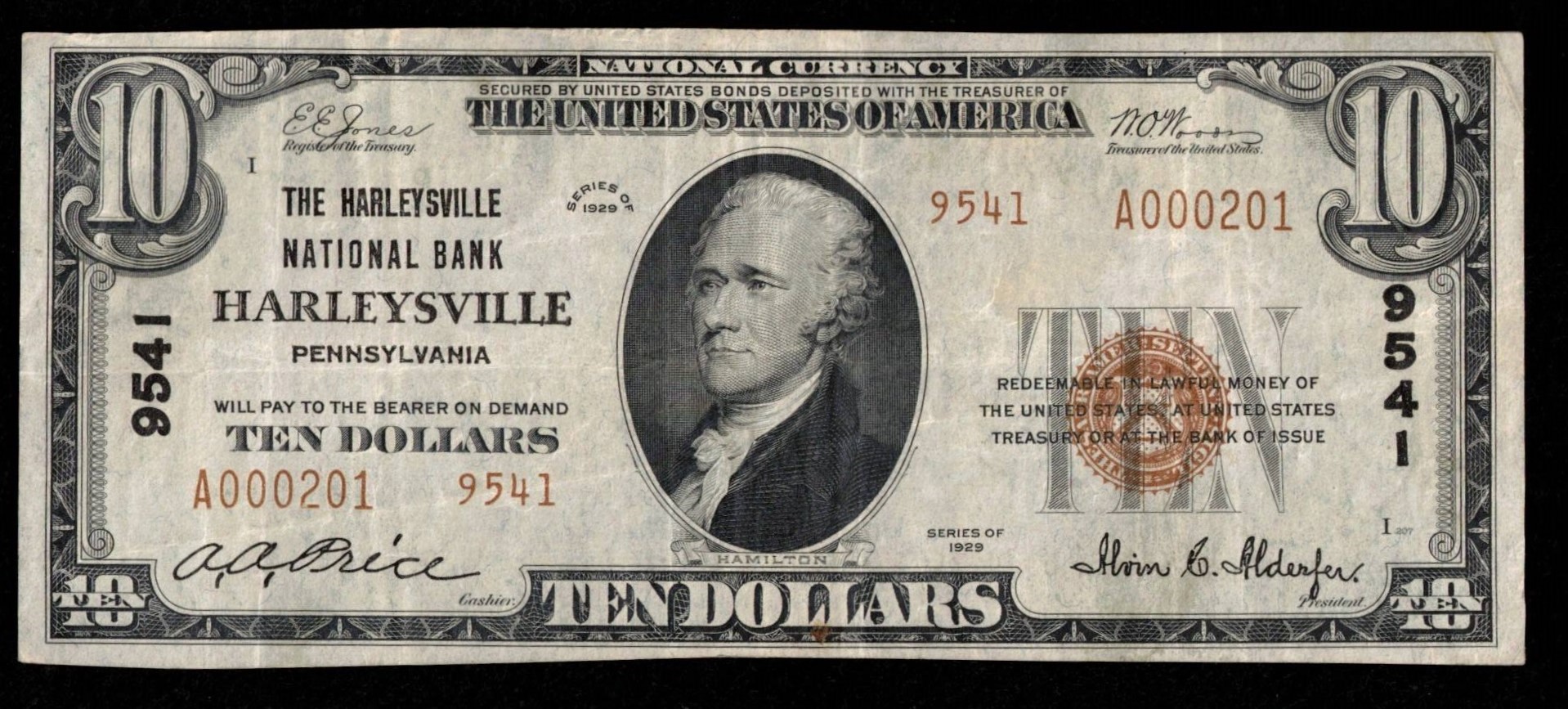 TYPE-2 1929 Series Twenty Dollar THE HARLEYSVILLE NATIONAL BANK OF HARLEYSVILLE, PENNSYLVANIA. SERIAL A000201